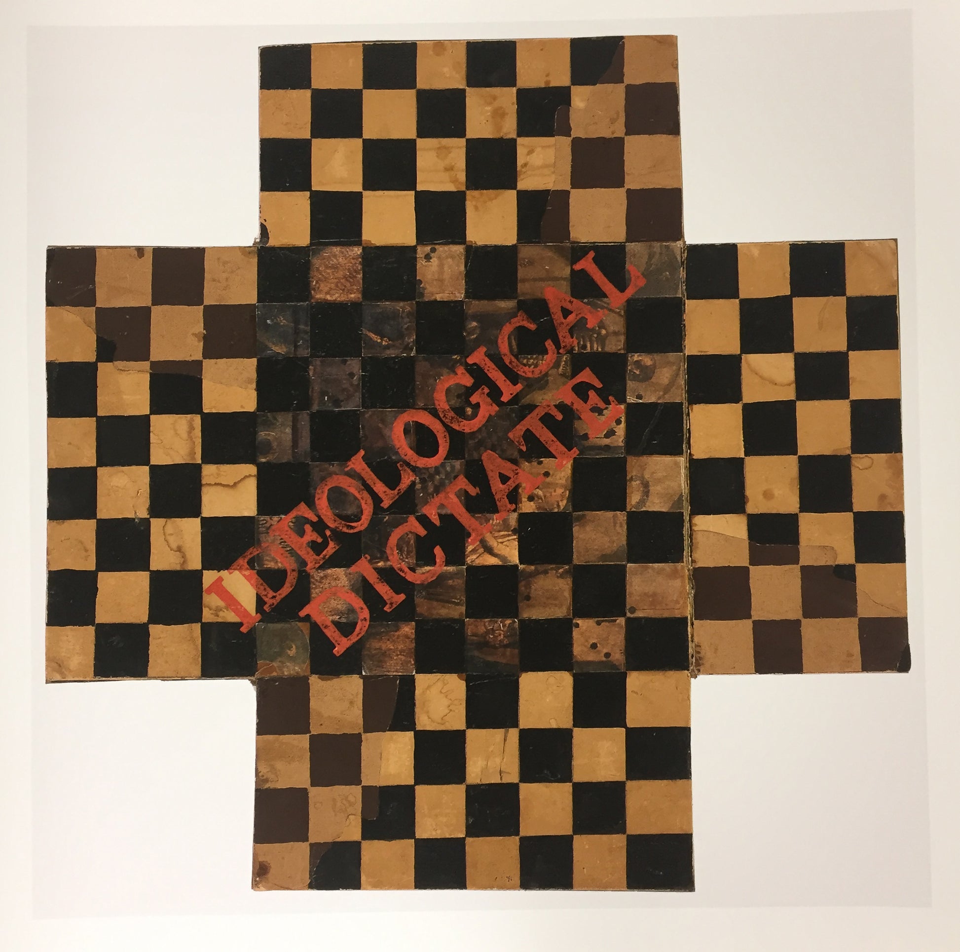 IDEOLOGICAL DICTATE is based on one of the first paintings of Laibach Kunst, entitled "Kreuzschach (für vier Personen)", created in 1971, with further interventions in 1981, made as mixed media. The original painting, referring to Duchamp's passion for chess, is in private collection.