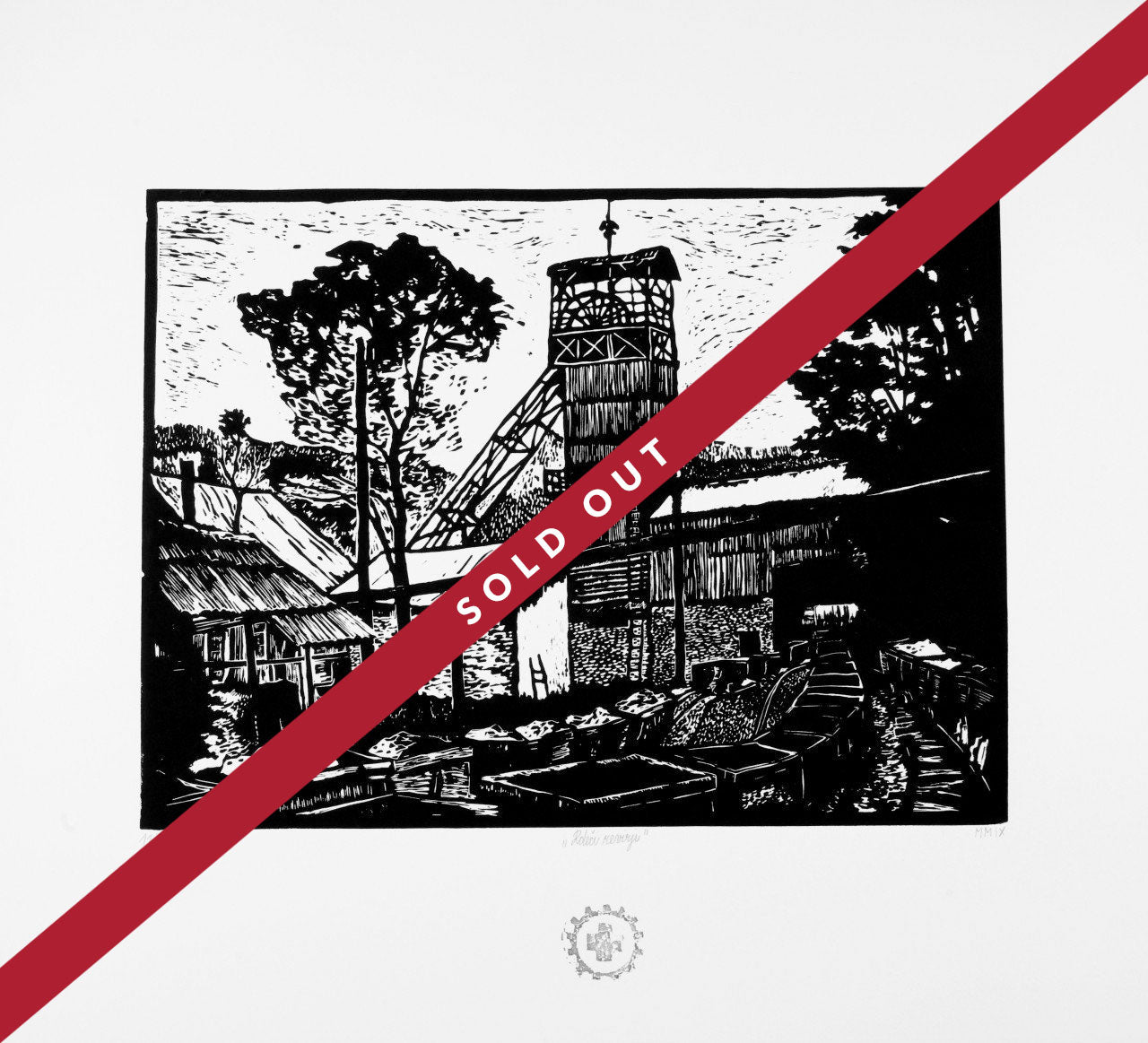A limited edition Laibach Kunst graphic from the series Red Districts (Rdeči revirji). The so-called Red District is an industrial area in Laibach’s hometown of Trbovlje and the surroundings. The motifs represent the factories and important architectural and cultural sites of the area. Laibach exhibited these series at their very early Laibach Kunst exhibitions in the 1980s. Reprints were made in 2010. Each graphic is numbered, signed, and stamped with a Laibach seal.
