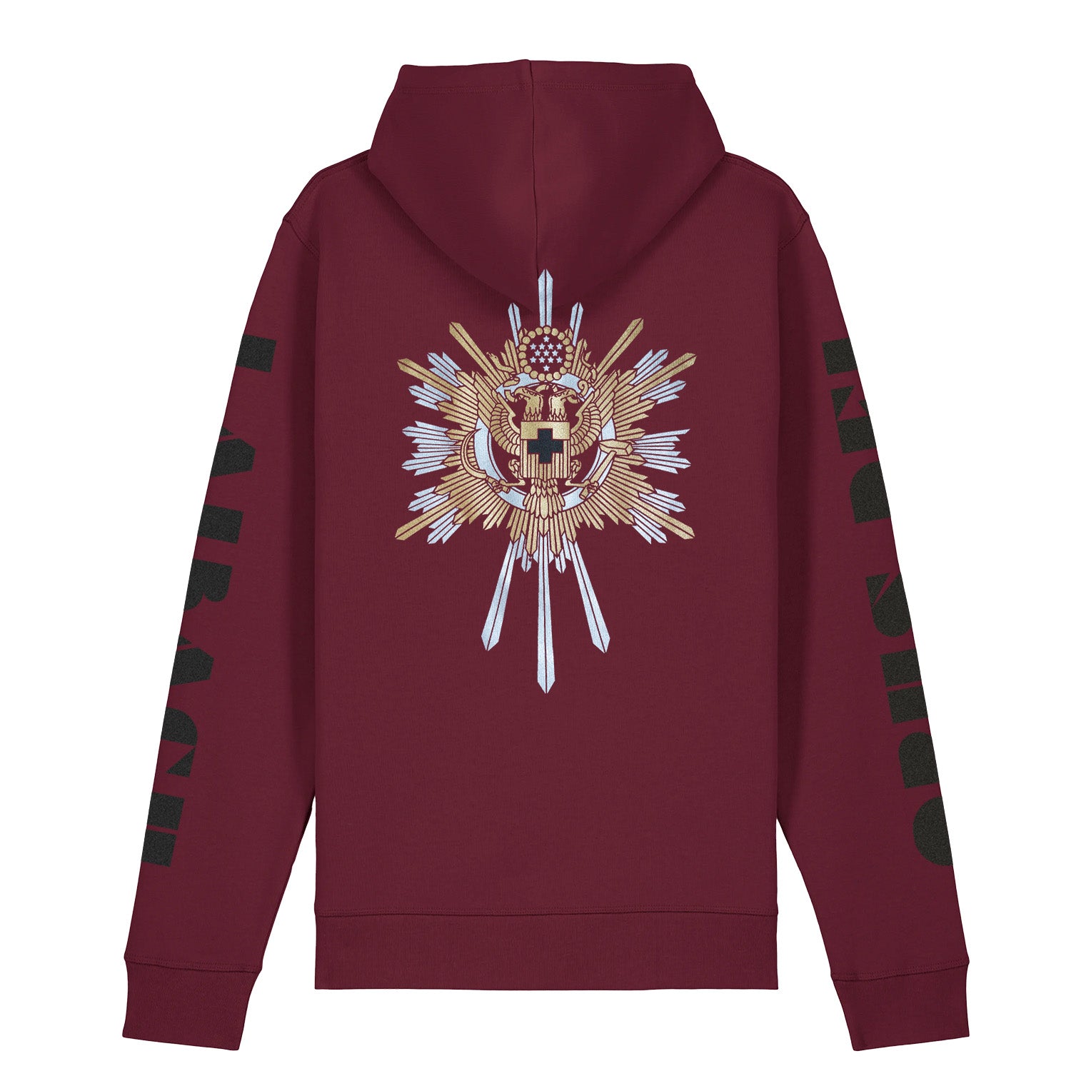 Material: 85% Ring Spun Combed Organic Cotton - 15% Polyester (280 g/m2), Color Burgundy, Kangaroo pocket.
