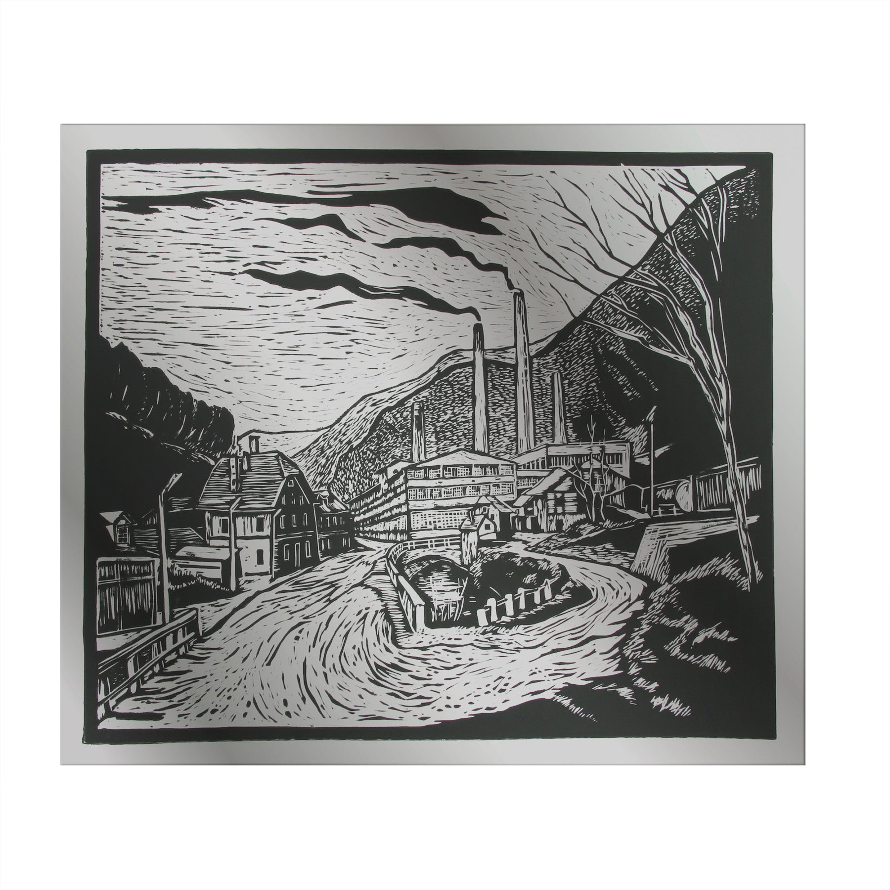 The image "Glass Factory Hrastnik", is one of the eight iconic motifs from the Red Districts series in this set (all prints on aluminium plates). The Hrastnik glassworks factory started producing glassware (beer glass, medical glass, cut glass and crystal glass) in 1860. In 1903, the factory was taken over by Franz Wieltschnigg, who modernised and expanded the business considerably and extended sales abroad, including across overseas.