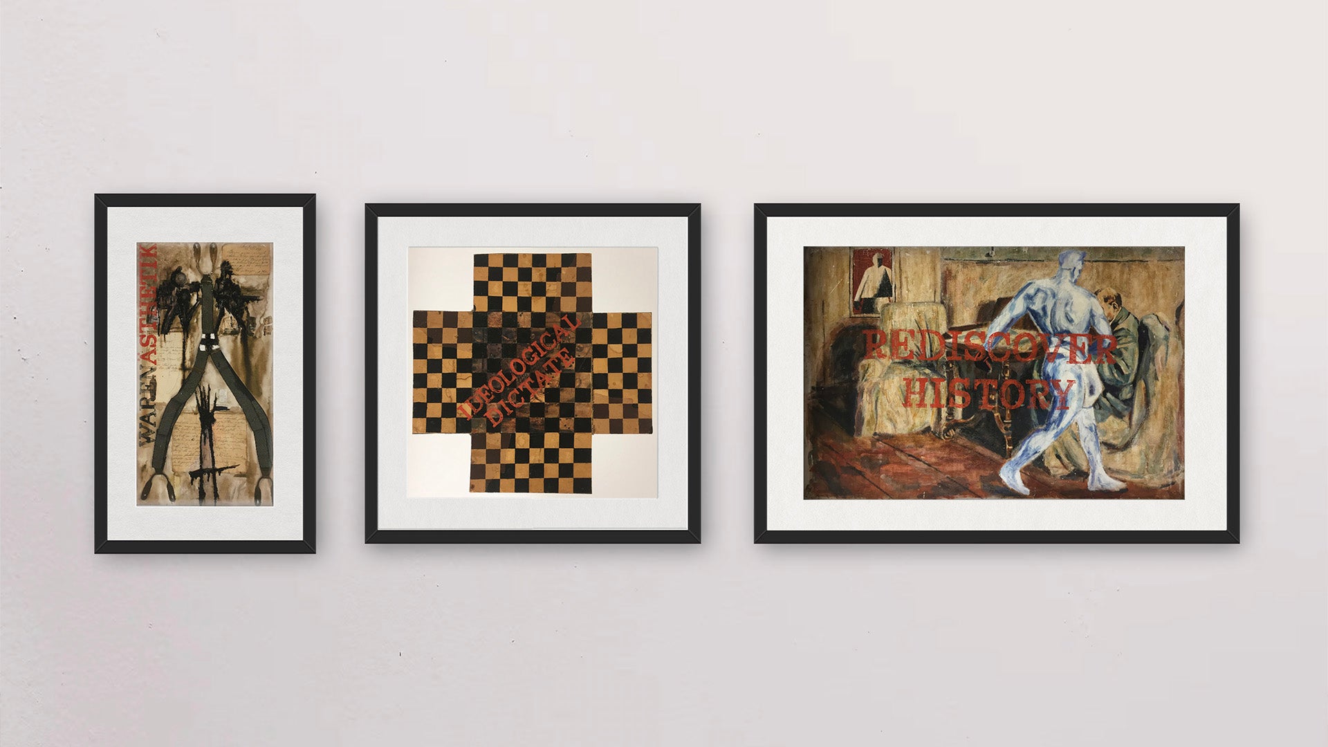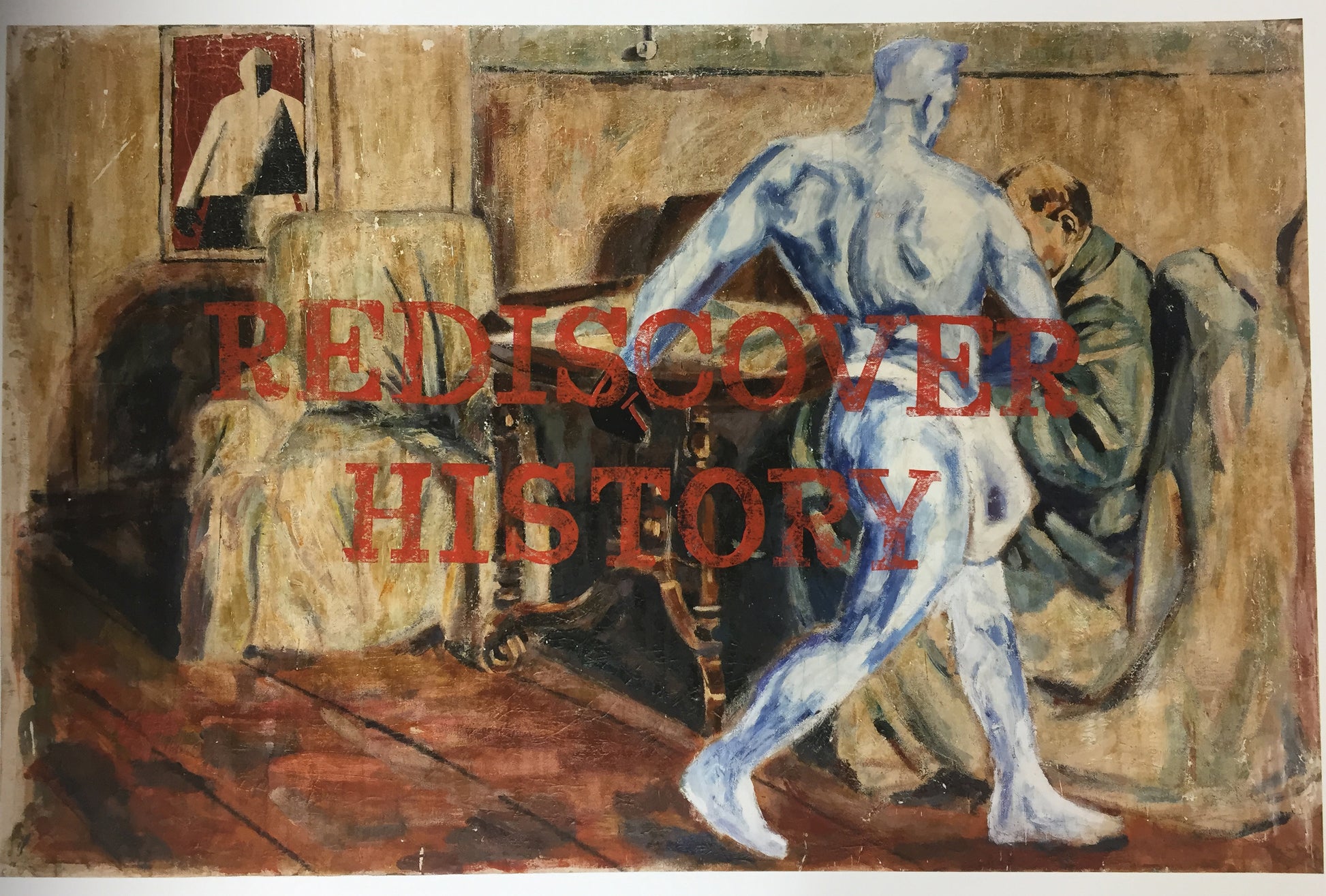 REDISCOVER HISTORY is based on one of the first paintings of Laibach Kunst, entitled "Blue Sower in Lenin's Room ", created in 1982. The original version of this painting is now in private collection. Laibach created a copy of it in 2021.