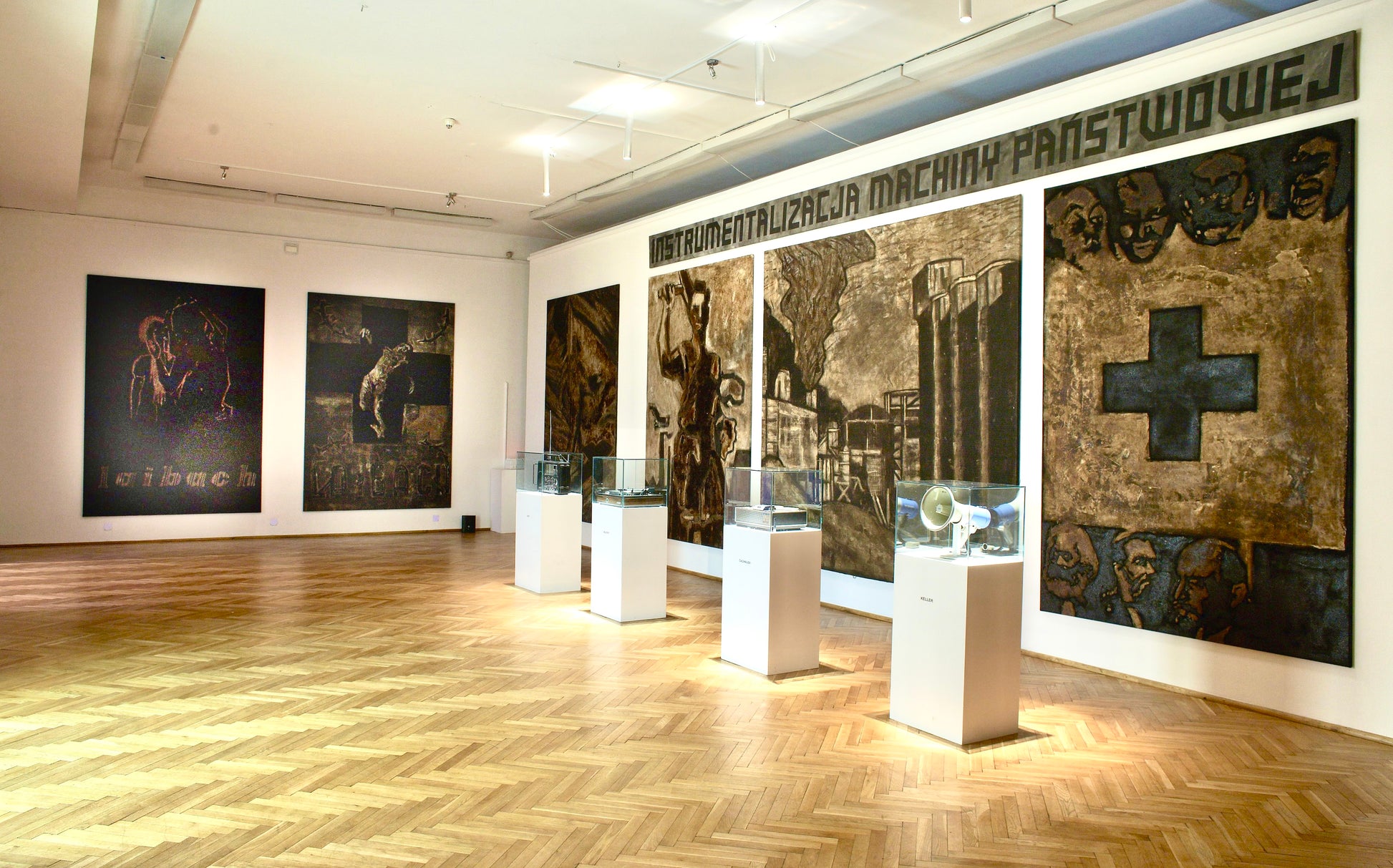 The present painting itself was created in 2008–2009 as part of a larger installation, entitled “Instrumentality of the State Machine”, which Laibach first presented in this setting in 2009 at their extensive retrospective exhibition “AUSSTELLUNG! LAIBACH KUNST – RECAPITULATION”, at the Muzeum Sztuki Gallery of Modern Art in Łódź, Poland, and later as well in an exhibition in Zagreb, at Dom HDLU 2011, entitled “AUSSTELLUNG! LAIBACH KUNST – Ceci n'est pas Malevich”.