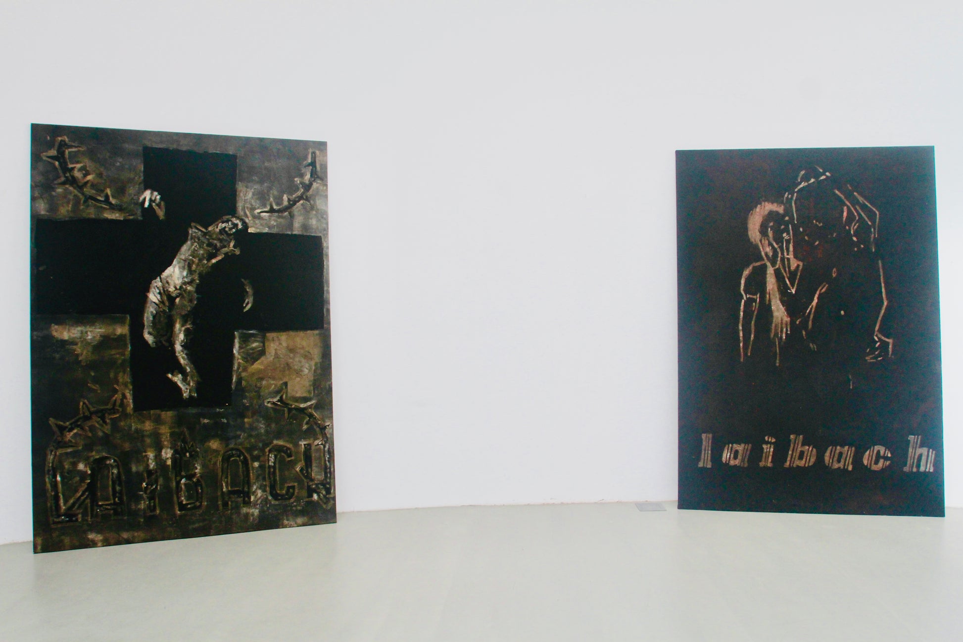 The original linocuts represent historical motifs from the so-called Red Districts, as the industrial basin of Slovenia in the Zasavje region is called, which encompasses the towns of Trbovlje, Zagorje, and Hrastnik, i.e. the environmental area where the band Laibach were formed in 1980. These ‘industrial’ motifs became part of the basic aesthetic content of Laibach, which never denied their industrial-cultural origins, and after the formal establishment of the broader umbrella art formation Neue Slowenische Kunst (1984–1992), these motifs were adopted and appropriated from Laibach by other NSK groups, most notably by the Irwin painting group.