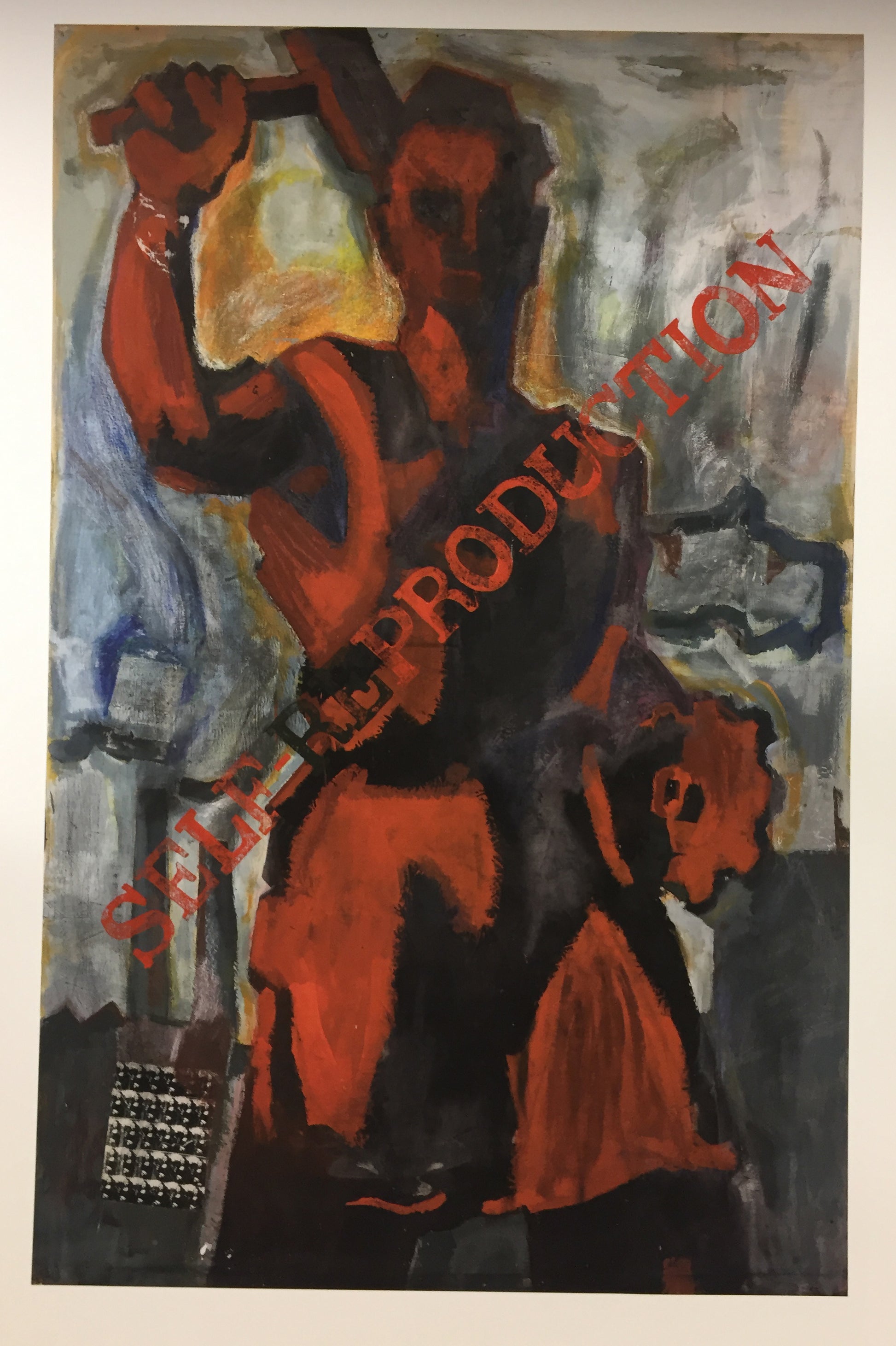 In addition to a replica of the original painting by the Red Metal Worker, Laibach has also created many different versions (reproductions) of this motif. But the present work, titled SELF-REPRODUCTION exists in only four copies.