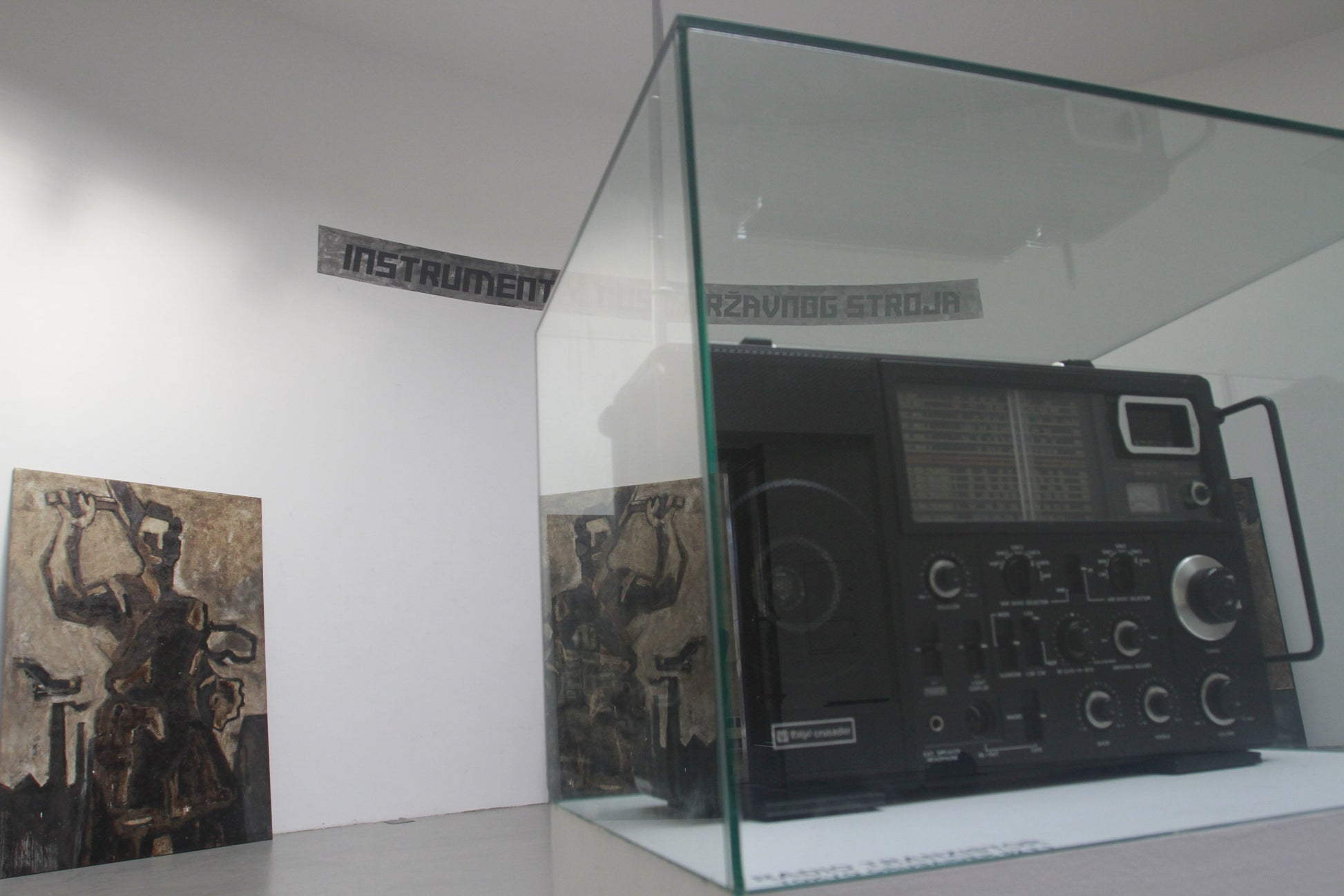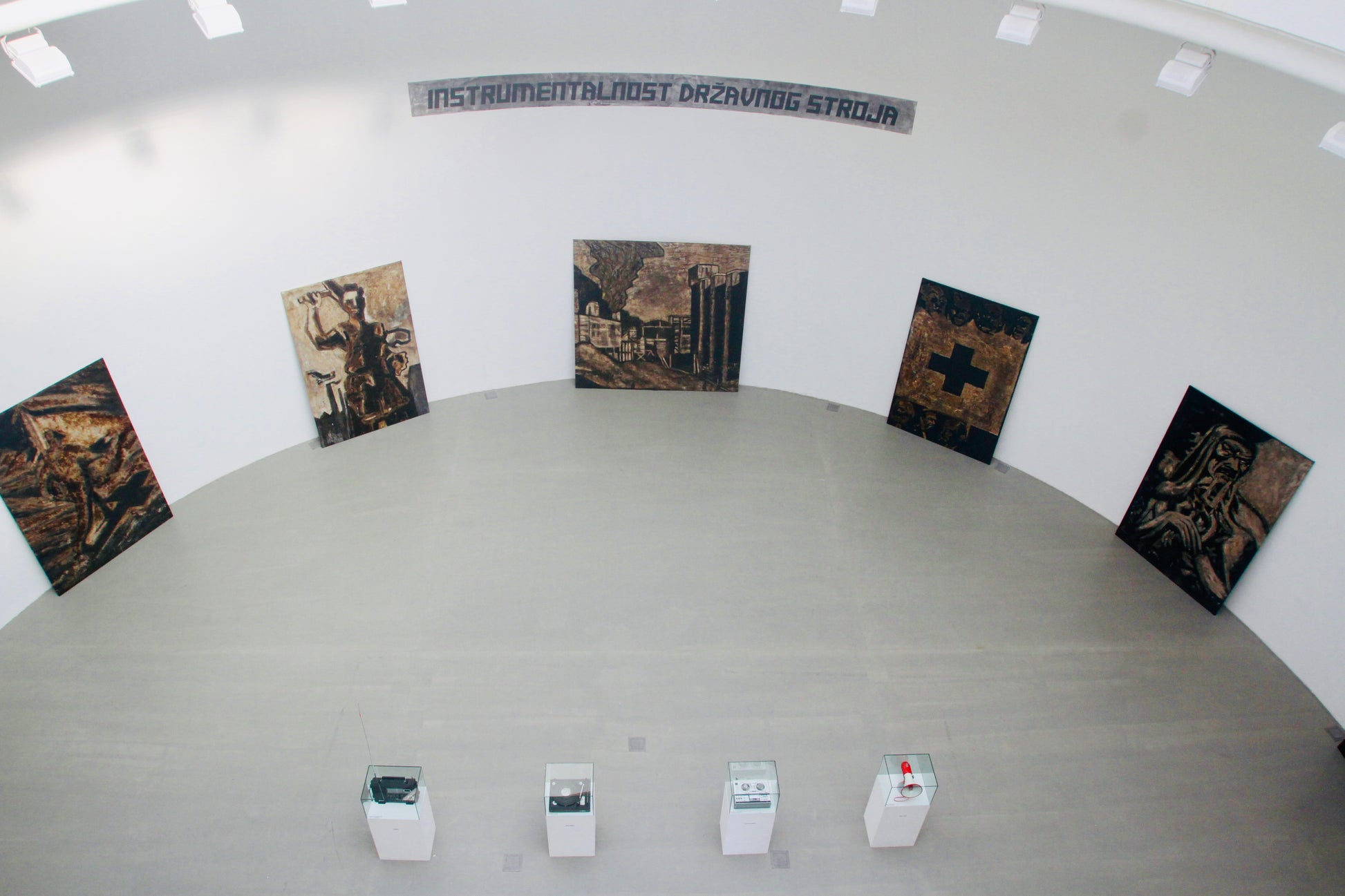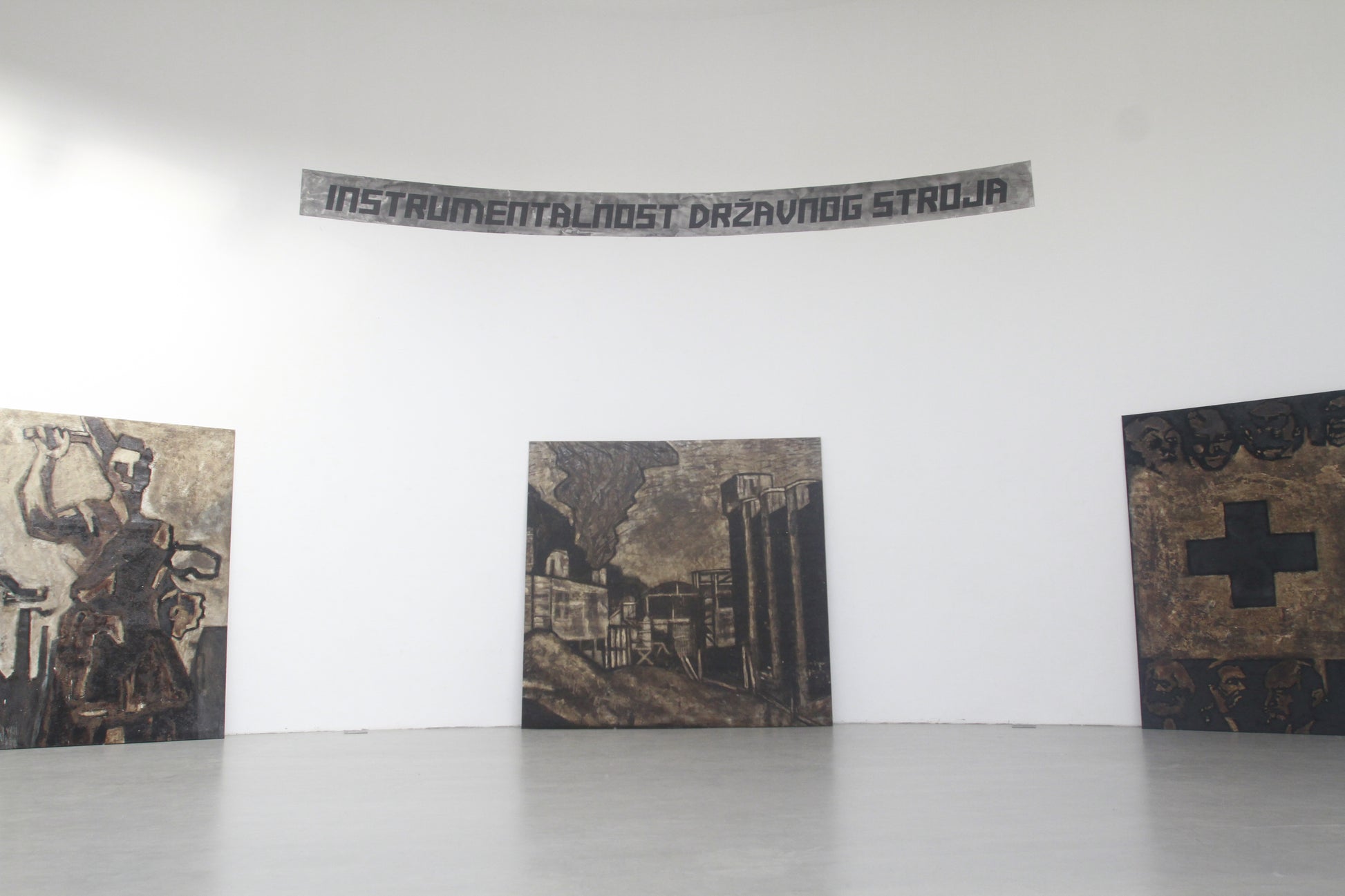 The present painting itself was created in 2008–2009 as part of a larger installation, entitled “Instrumentality of the State Machine”, which Laibach first presented in 2009 as part of their extensive retrospective exhibition “AUSSTELLUNG! LAIBACH KUNST – RECAPITULATION”, at the Muzeum Sztuki Gallery of Modern Art in Łódź, Poland, and later as well in an exhibition in Zagreb, at Dom HDLU 2011, entitled “AUSSTELLUNG! LAIBACH KUNST – Ceci n'est pas Malevich”.