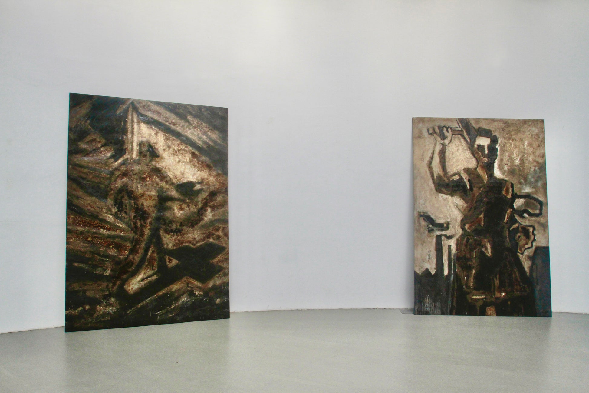 The original linocuts represent historical motifs from the so-called Red Districts, as the industrial basin of Slovenia in the Zasavje region is called, which encompasses the towns of Trbovlje, Zagorje, and Hrastnik, i.e. the environmental area where the band Laibach were formed in 1980. These ‘industrial’ motifs became part of the basic aesthetic content of Laibach, which never denied their industrial-cultural origins, and after the formal establishment of the broader umbrella art formation Neue Slowenische Kunst (1984–1992), these motifs were adopted and appropriated from Laibach by other NSK groups, most notably by the Irwin painting group.
